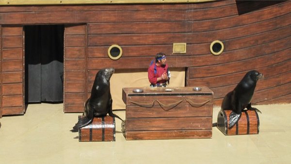Najbolj zabavna pa je bila predstava z morskimi levi, kjer so bili skrbniki živali hkrati tudi igralci, ki so s svojimi živalmi prikazali zgodbo o iskanju izgubljenega zaklada dopolnjeno z obilico humorističnih vložkov.