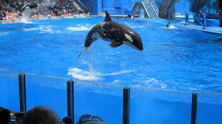 Prva izmed predstav, ki smo si jih ogledali je vključevala akrobacije z orkami, ki so dodobra zmočile nič hudega sluteče obiskovalce v prvih vrstah. Poleg tega so prikazale različne akrobacije v zraku in vodi.